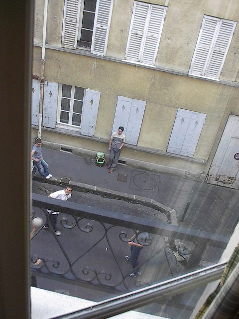 Cute boys in Guillaume's alley playing soccer.