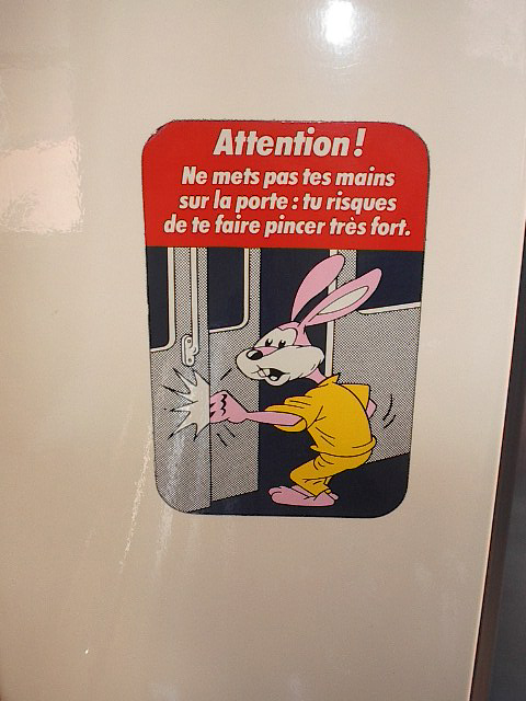 This subway warning sign only applies if you are a giant pink cartoon rabbit.